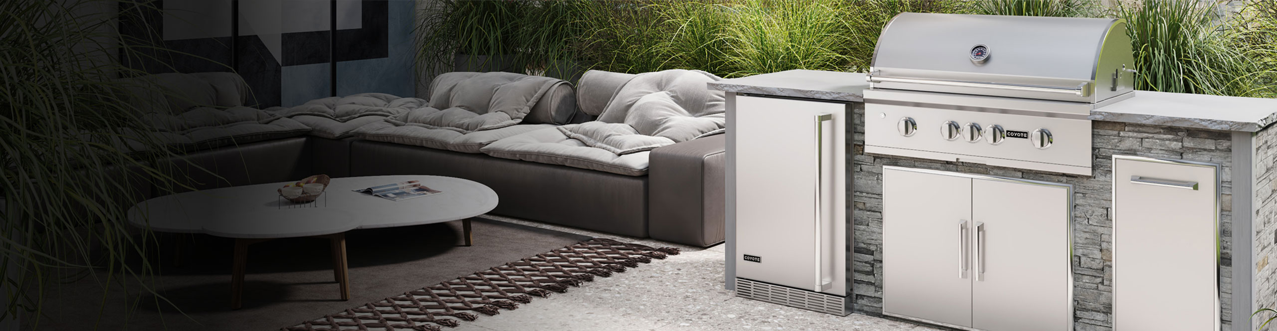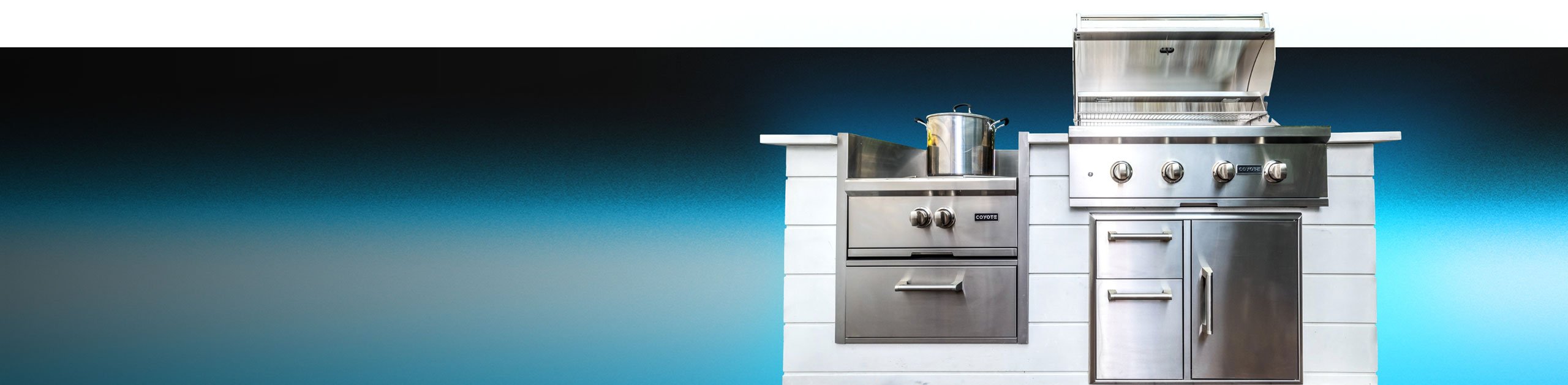 This outdoor kitchen provides enhanced cooking space by combining a Coyote 36″ grill with the added flexibility of a side burner.