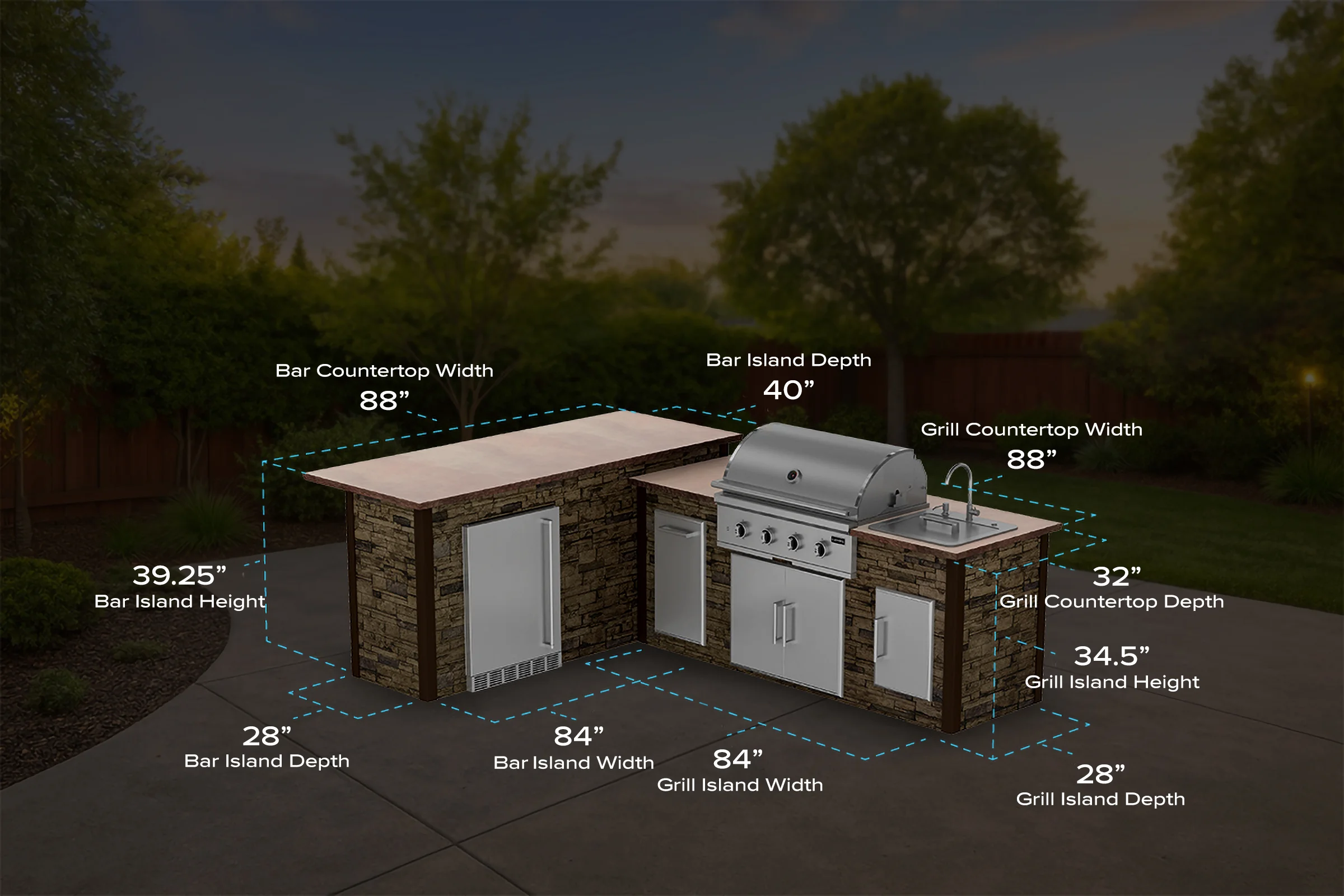 string(140) "Now you can have a full kitchen outdoors. With a 36″ grill, sink, fridge, waste bin, and tons of prep space, you have all the necessities."