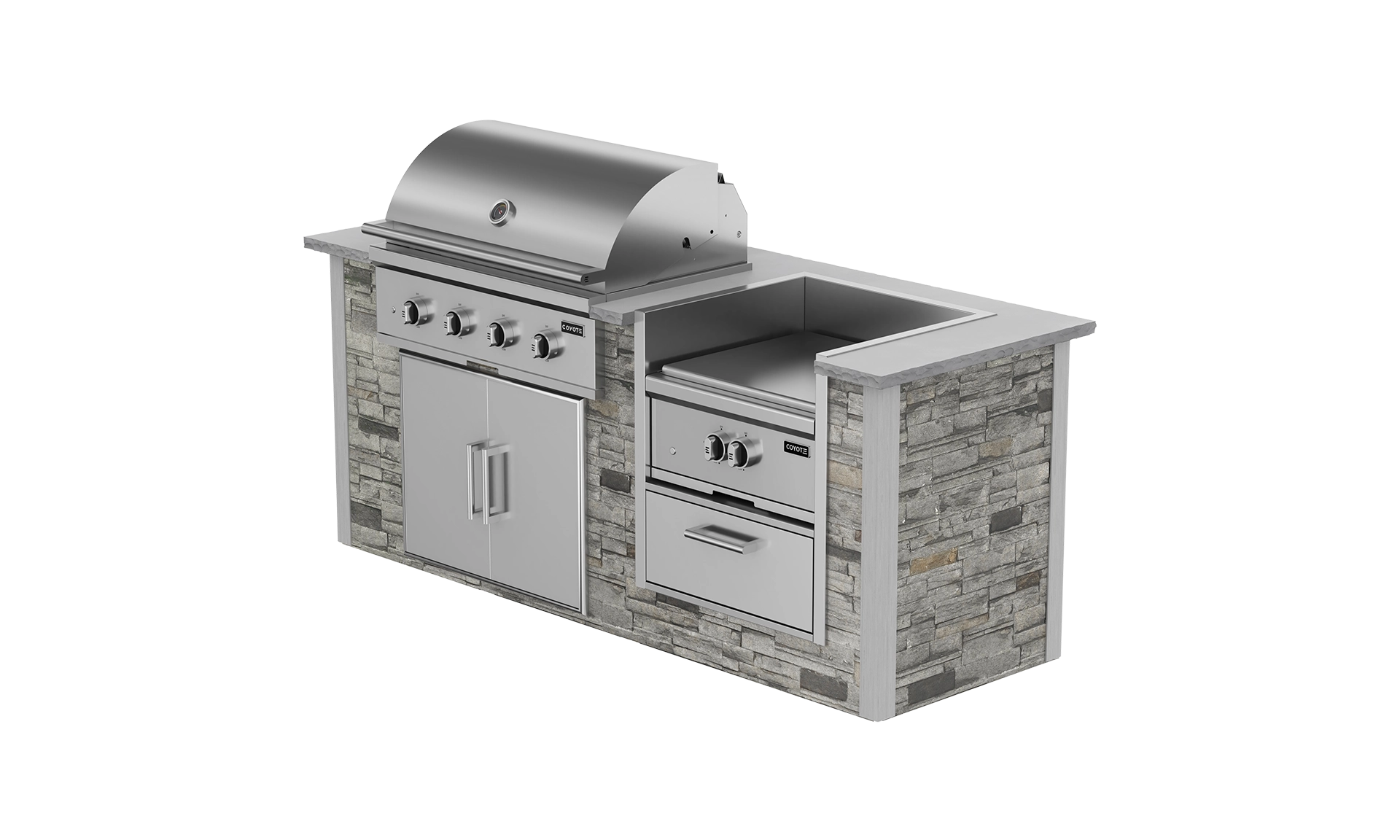 The RTA G7 Power Burner Island is an outdoor chefs dream. For any medium to large gathering size, you’ll be equipped to cook with ease. And for appliances? Access to the interior of your outdoor kitchen for repairs has never been more stylish and functional with the 31” 304 stainless steel double access doors. The included Coyote Power Burner levels up your cooking game. Whether you are looking to simmer a sauce, boil a large pot, or even use the Wok or Teppanyaki griddle accessory (not included). This appliance adds tons of flexibility to your cooking. And the sleeve that the burner is in also has a convenient drawer for extra storage. And the grill… This Coyote 36” C-Series Grill is sure to finish leveling up your cooking.. Here’s the specs: