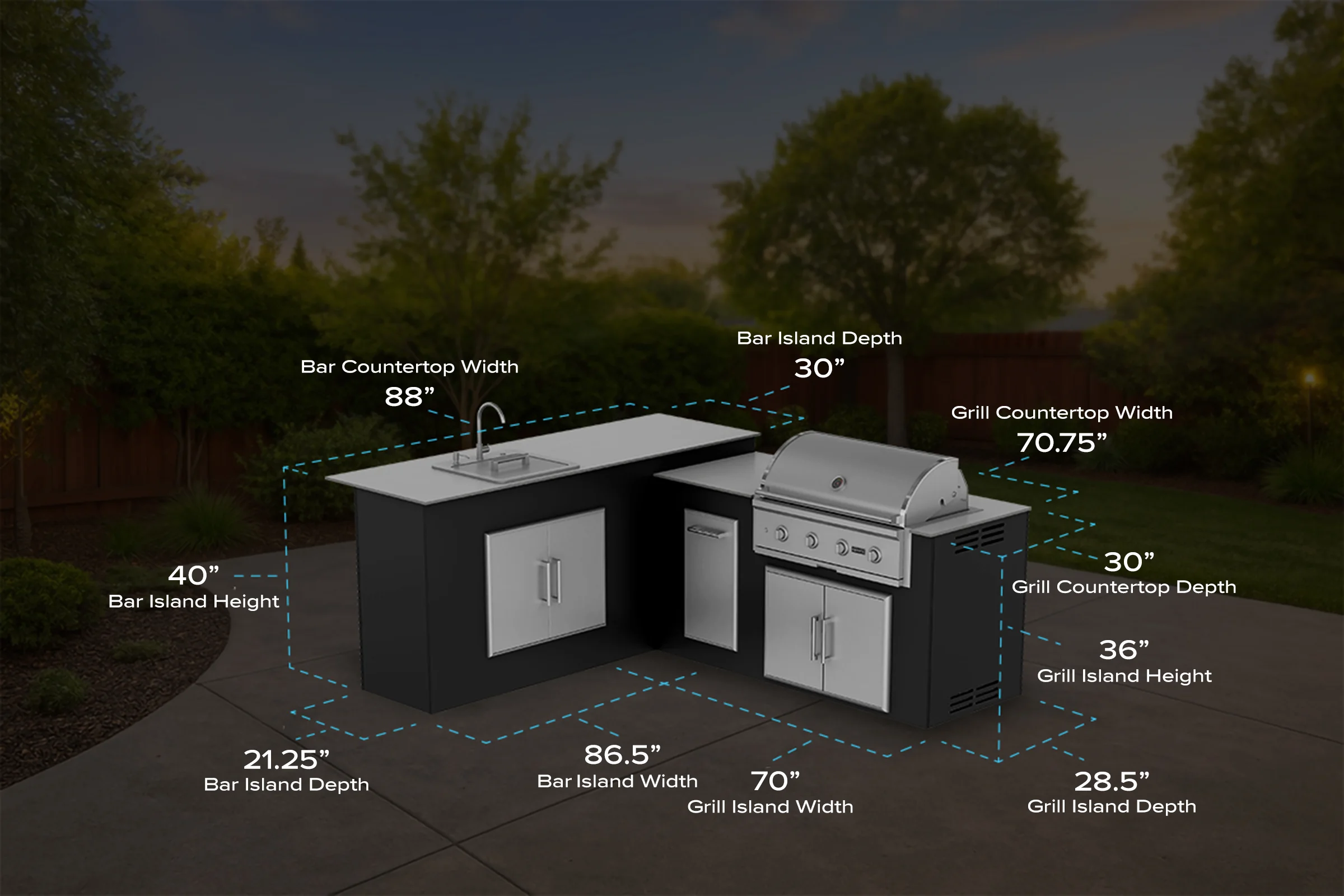 Hosting has never been easier with the M6 L-Shape Waste Bin & Sink Island. You’ll be hosting the same day your outdoor kitchen arrives! And for appliances? The 14” Single Pull-Out Trash & Recycle will keep your yard tidy and spotless without any extra effort. Access to the interior of your outdoor kitchen for repairs has never been more stylish and functional with the 31” 304 stainless steel double access doors. The 304 stainless steel Coyote Outdoor Sink makes cleanup a breeze. And for the grill? The Coyote 36” C-Series grill won’t disappoint. Your guests won’t believe how good the food is! Here’s the specs: