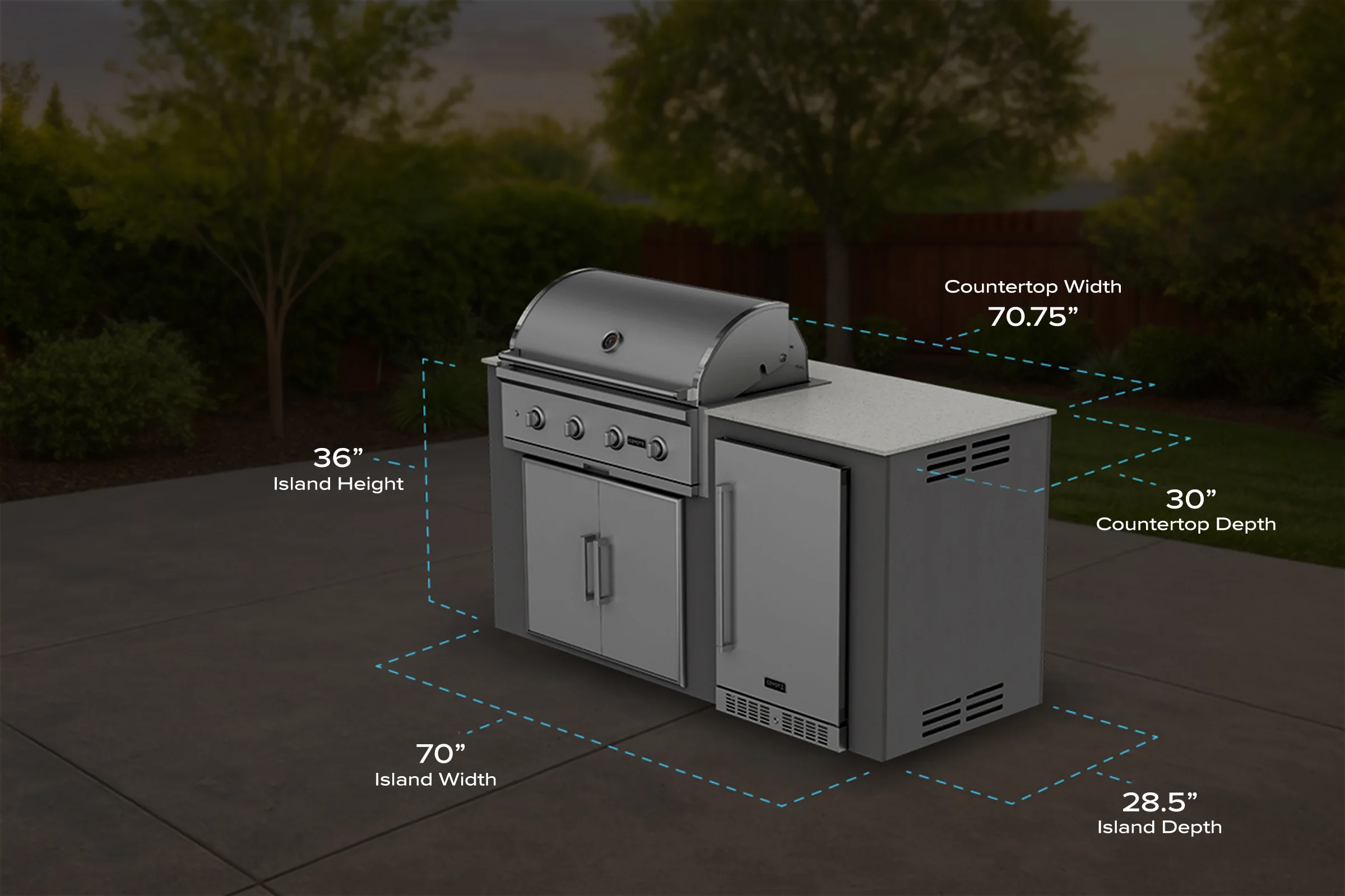 The M6 Refrigeration Island provides a boost in hosting potential, with a modern and sleek aesthetic. You’ll be fully equipped for your gathering, just in time. And for appliances? The M6 Refrigeration Island is fully furnished with best-in-class appliances from Coyote Outdoor Living. No more running in and out of the house for beverages and other cooking needs with the Coyote 21” Outdoor Refrigerator! This fully 304 stainless steel refrigerator is made for outdoor use. Access to the interior of your outdoor kitchen for repairs has never been more stylish and functional with the 31” 304 stainless steel double access doors. As for the grill, this Coyote 36” C-Series Grill is sure to please. Your guests will be raving about the food for months to come. Here’s the specs: